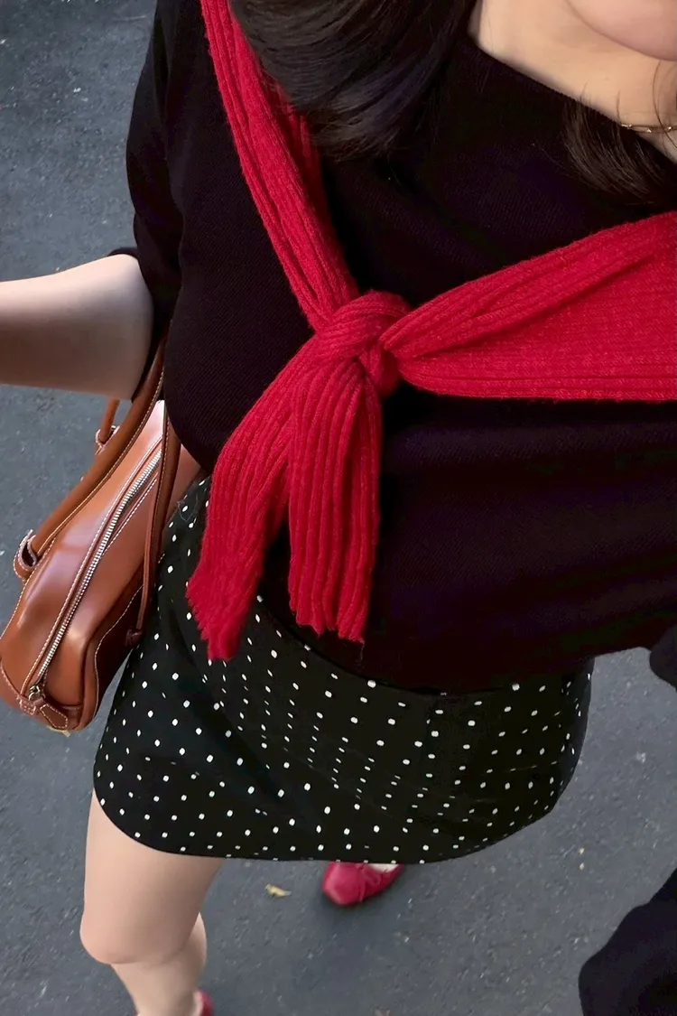 K12 毛呢點點短裙