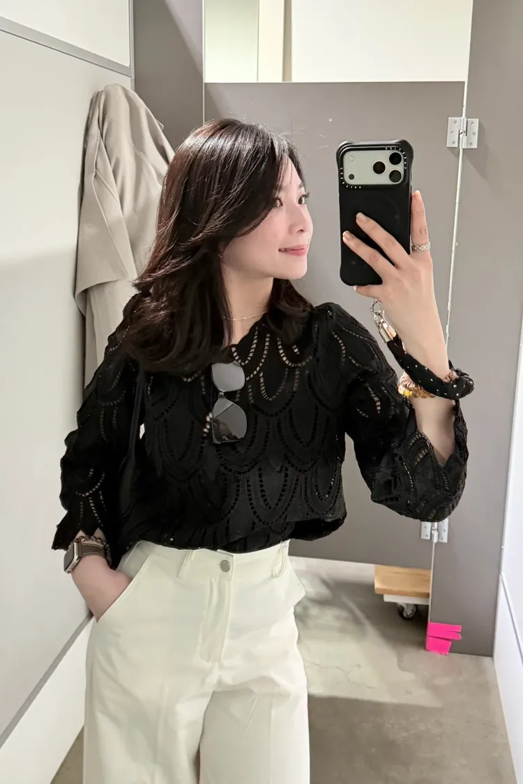 L15 高級緹花刺繡鏤空上衣