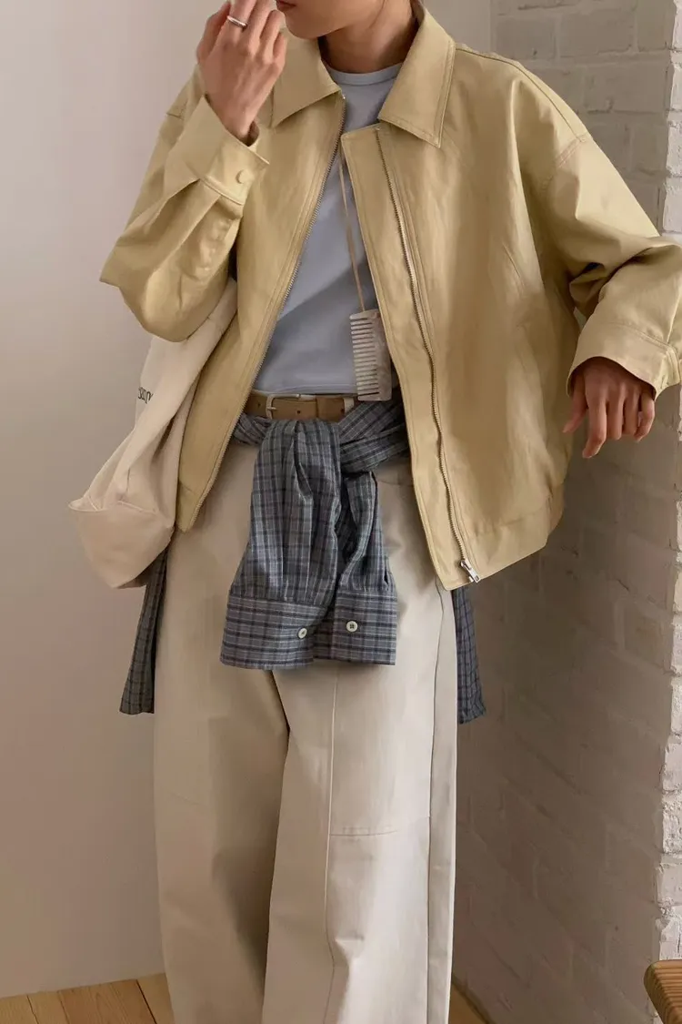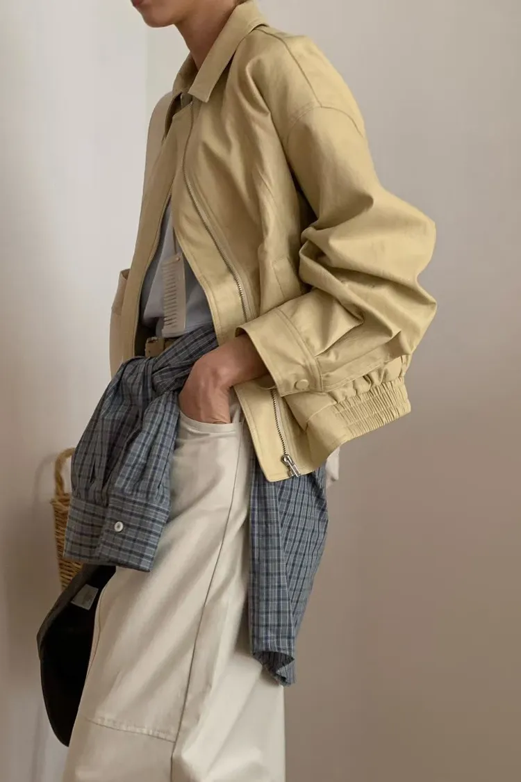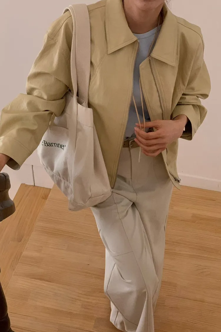 L28 正韓!春天黃色皮外套